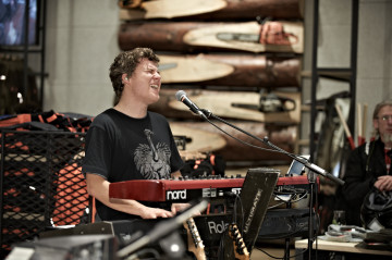 Jetzt öffnete dieser Laden, der zufällig auch noch ganz in der Nähe meines Elternhauses war mit einem kleinen Konzert. Es spielte die eine Band, bestehend aus dem Lehrer-Kollegium der Musikschule. Es waren damals alles hochkarätige Vollblut-Musiker aus München. Dort stand ich nun — im Verkaufsraum vor der Bühne mit noch gut zwanzig anderen Leuten. Die Band fing an zu spielen. Ich war von Anfang an vollkommen begeistert. Ich kann gar nicht mehr sagen, welche Stücke genau gespielt wurden. Jedoch hat sich dieses Gefühl, dieser Mix aus verschiedensten Emotionen bei mir eingebrannt. Der Keyboarder hielt sich spielerisch sehr bedeckt und es war dennoch unglaublich gut — auch, wenn ich damals gar nicht sagen konnte, wieso es so gut war. Dann kam das einzige Keyboard-Solo an diesem Nachmittag und ab dem Zeitpunkt war für mich alles zu spät. Mein ganzer Körper reagierte und ich wurde mit Glückshormonen durchflutet. Dieser Mensch hat mir ein Lächeln ins Gesicht gezaubert, dass den ganzen Tag nicht mehr wegging. Er hat mich begeistert und in mir die Leidenschaft an der Musik wieder entfacht.